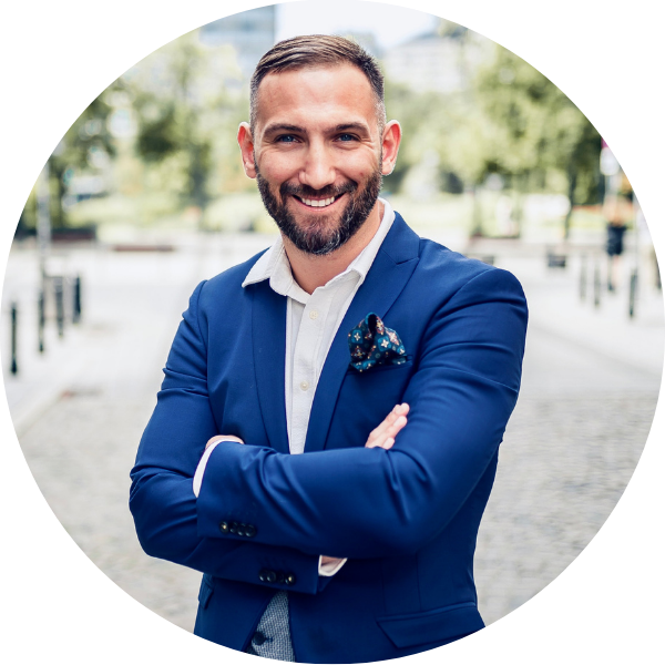W nieruchomościach od 2021 roku. Pomaga właścicielom skutecznie sprzedawać mieszkania w Warszawie, pracując głównie z poleceń. Absolwent ASBiRO, praktyk sprzedaży i negocjacji, pasjonat psychologii biznesu i upraszczania złożonych procesów.