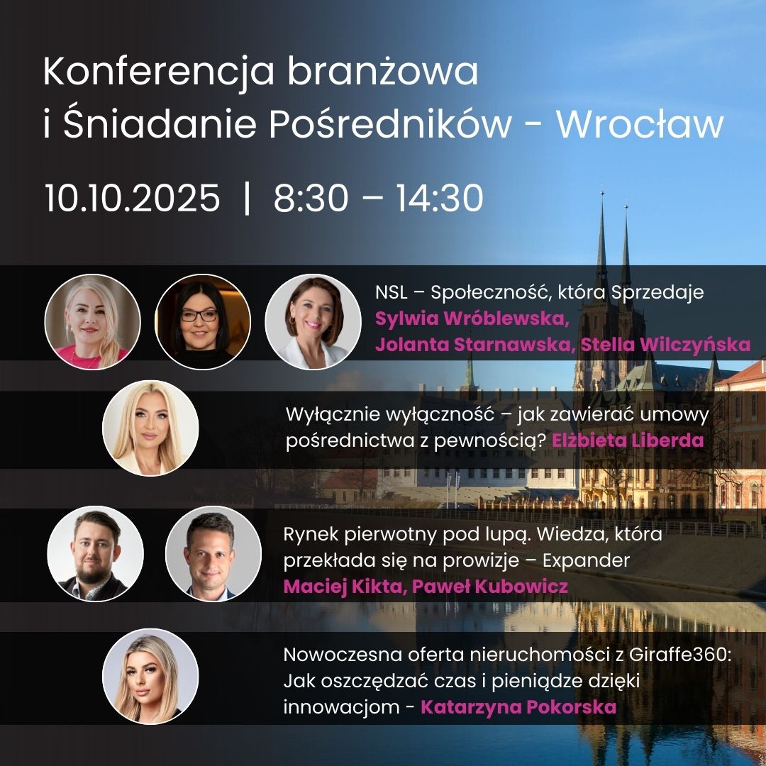 Opowiemy o działaniach i sukcesach Społeczności NSL, przedstawimy bieżące analizy rynku pierwotnego przygotowane przez Expander, zyskacie wiedzę o innowacyjnych narzędziach marketingowych od Giraffe360 Polska. Kulminacyjnym punktem konferencji będzie obszerna prelekcja oraz otwarta dyskusja z Elżbietą Liberdą – jednym z najbardziej cenionych i uznanych Radców Prawnych w branży nieruchomości.